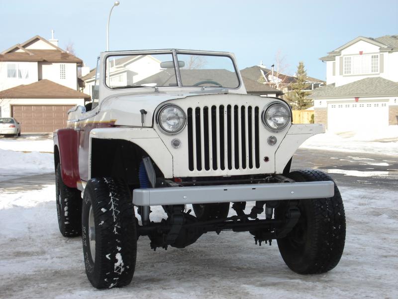 Not quite original, but something Jeep should of done. It is all Jeep, and like all Jeeps should be. Built up, not bought. 1950 Jeepster turned into 4x4. Suported on a modified Chreokee frame and running gear with Dana 44 frt and rear and a 4" lift. Running the AMC 360 with a Trurbo 400. Just finishing with a couple odds and ends to do befor summer. Can't wait to get out and drive it.