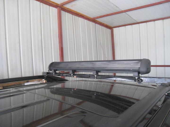 Here are the pictures of my first prototype that I made in China and tested on my truck there (please note the sample I am bringing now has changed; I modified the mounting design so that it has just two support mounts on the ends instead of the 4 mounting bolts like the non-patented (yet) system on Vision X's. I found it way too much of a hassle to adjust the tilt when I have a full truck load of equipment versus empty truck and throws the aim off).