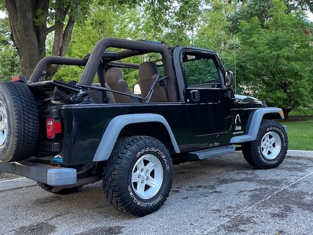 Rare, long wheelbase 2 dr TJ Unlimited. Black. One owner. No accidents. No modifications. Safetied. Air, Auto, New Tires, Dual Tops. Typical "beauty spots" for this model and year