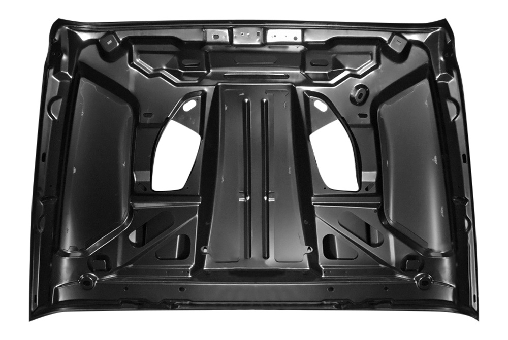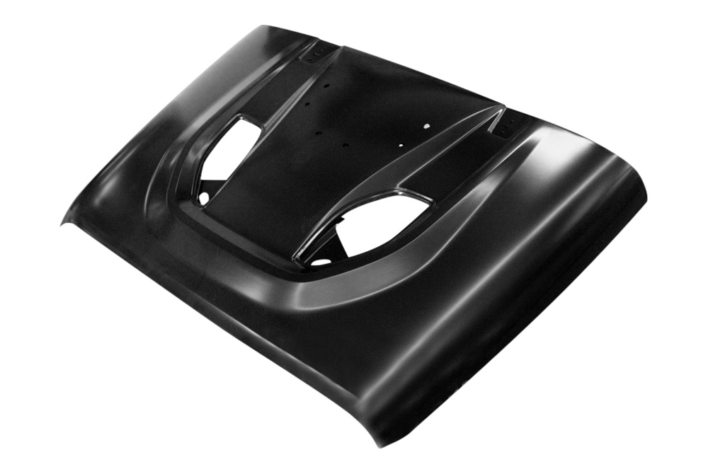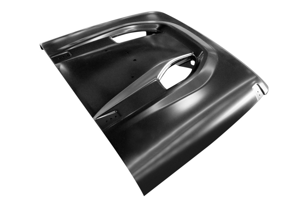 It has and aggressive, yest simple design and durable steel construction. Amerihood brand is famous for their high quality fiberglass and steel hoods. The hood installs with a help of original mounting hardware and comes unpainted.
